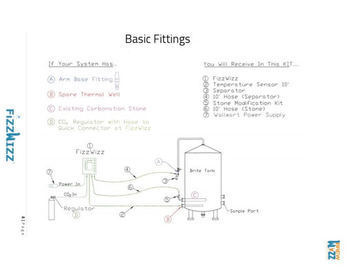 The FizzWizz connects to any carbonation tank, including fermentation vessels/ uni-tanks. BrewWizz offers three fitting kits for reliable tank connection, and it is recommended that they are dedicated per tank.