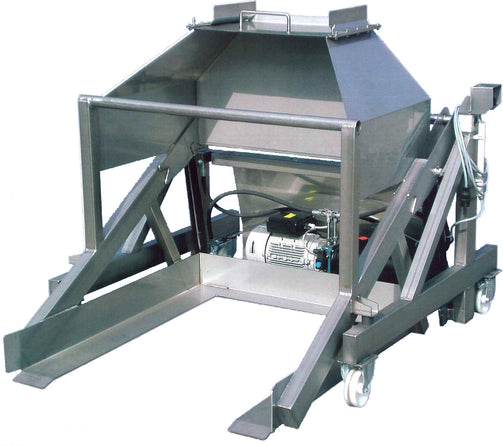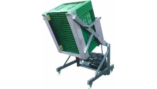 Request a QuoteTip into your KWEM Washer-Elevator-Grinder with the Kreuzmayr Bin Tipper. Load with a variety of sized orchard bins.