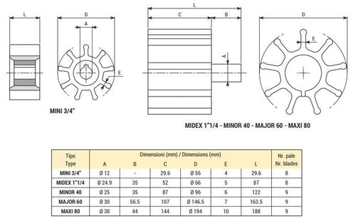 Neoprene rubber (CR) impeller built for Liverani Major 60 Pump.