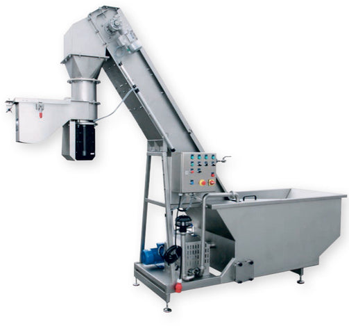 Request a QuoteWash, elevate and grind a variety of produce at a rate of 6600 lb/hr with the Kreuzmayr KWEM 3000 Washer Elevator Grinder. Deposits directly onto your Belt Press.